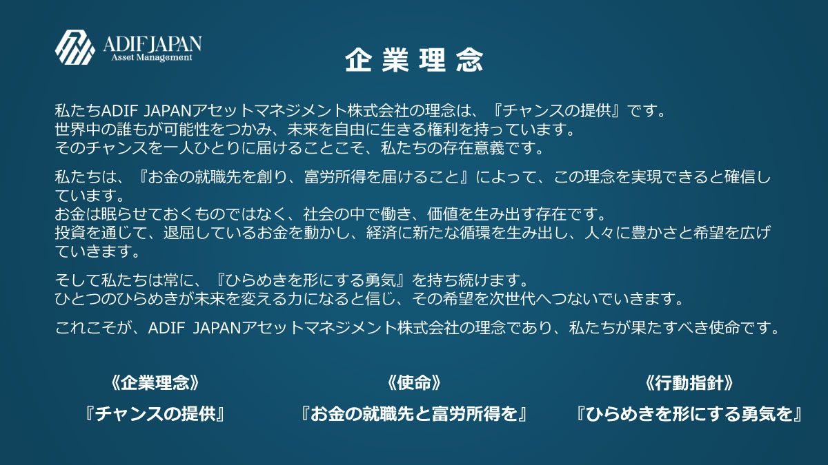 | 商 号 | ADIF JAPANアセットマネジメント株式会社 英文表記:ADIF JAPAN ASSET MANAGEMENT Co., Ltd. | |